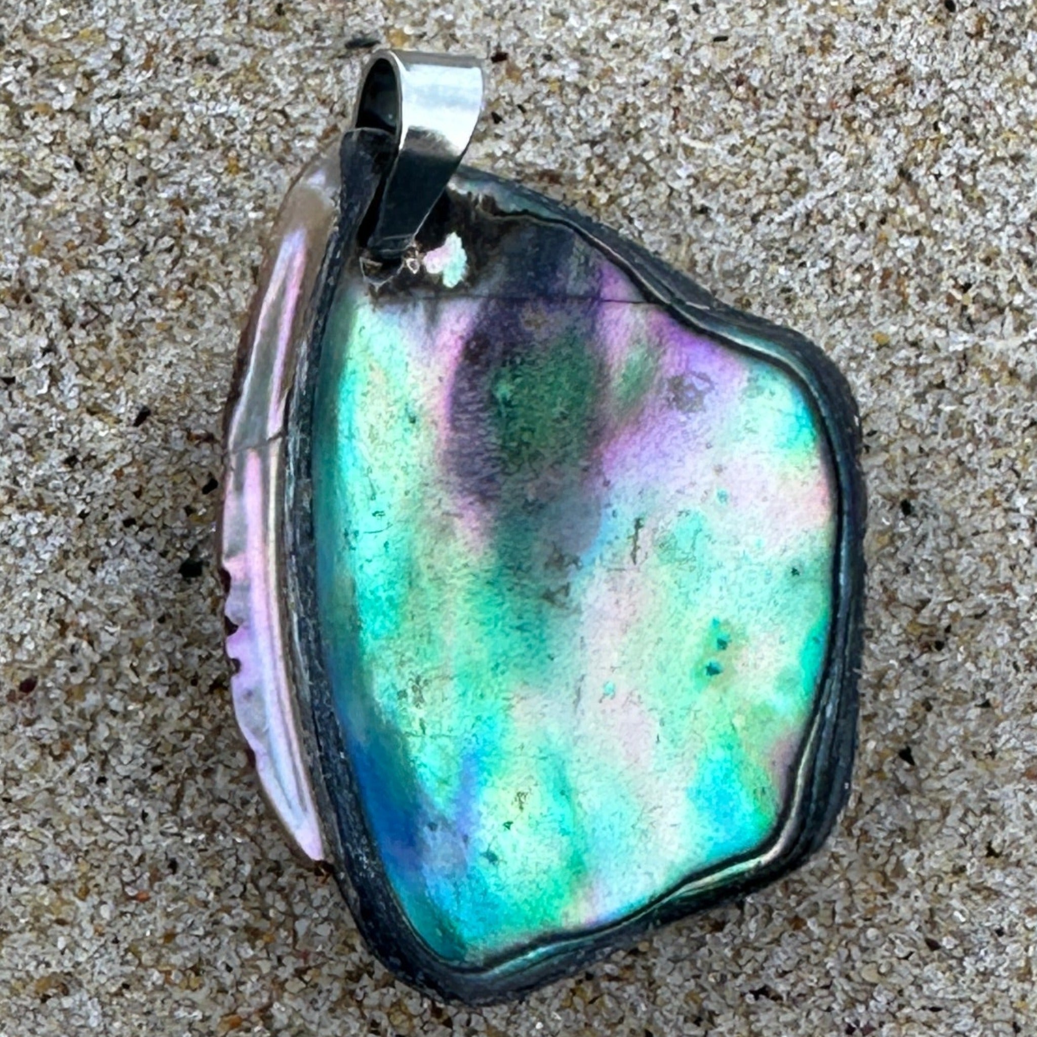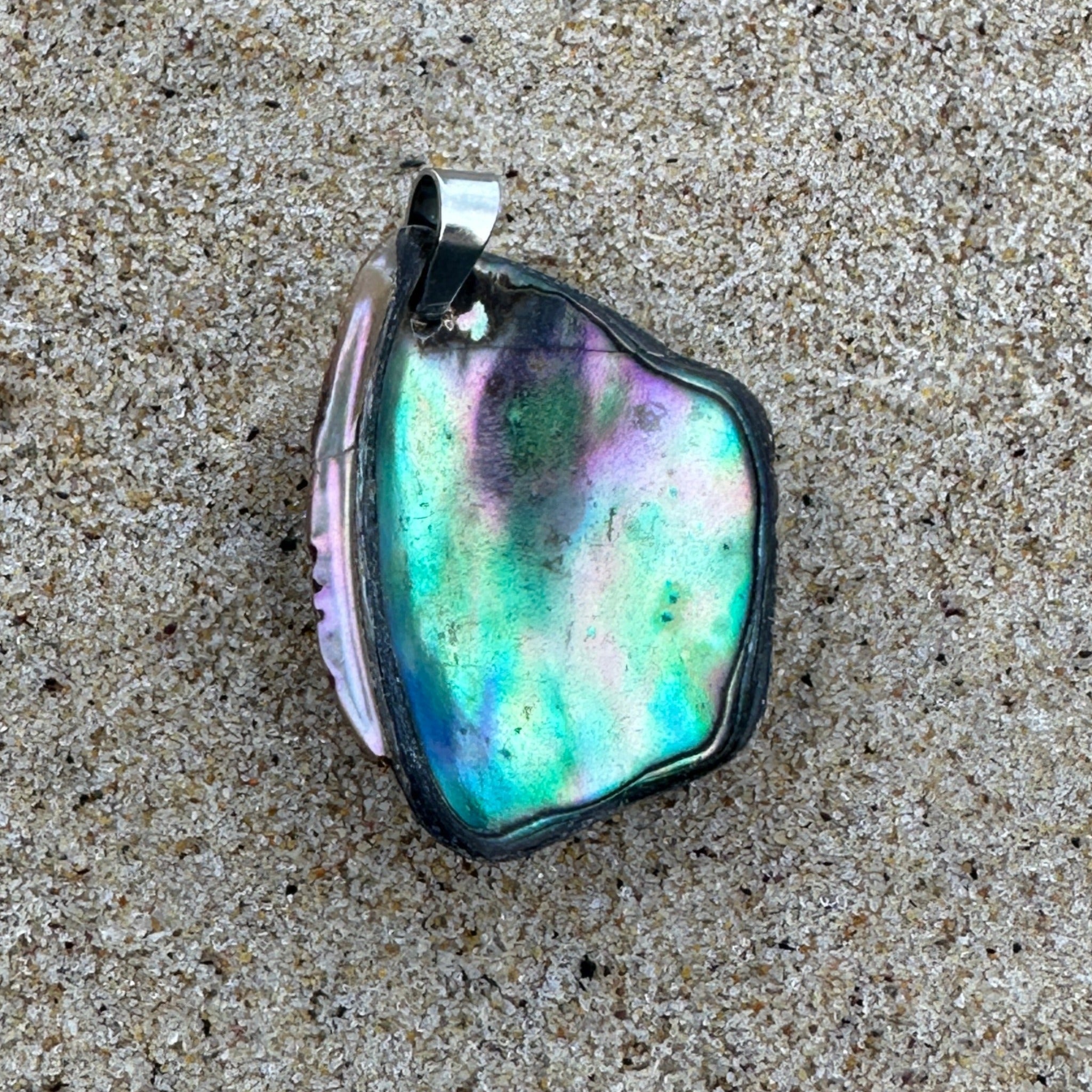 This elegant small Paua Shell pendant, made from genuine New Zealand Paua Shell, features stunning ocean-inspired colours.