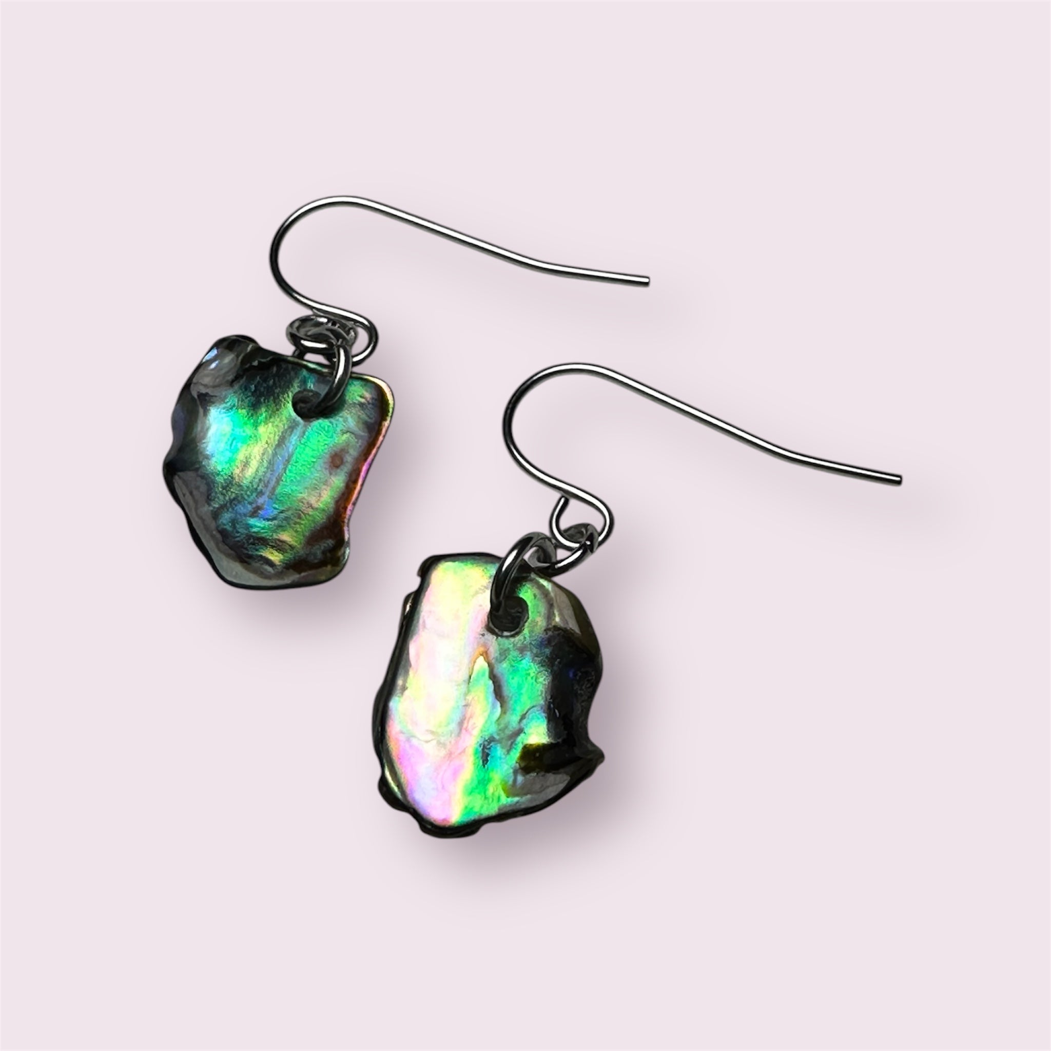 Born of the sea and kissed by light, our Paua Shell Earrings shimmer in blues, greens, and violets — a true masterpiece of nature.