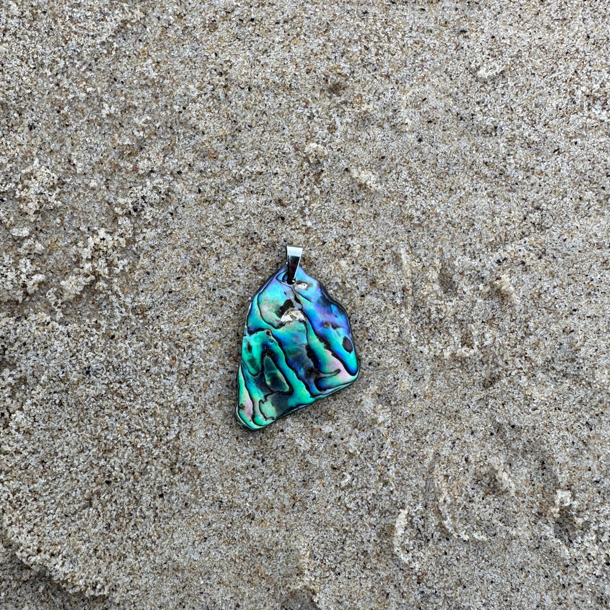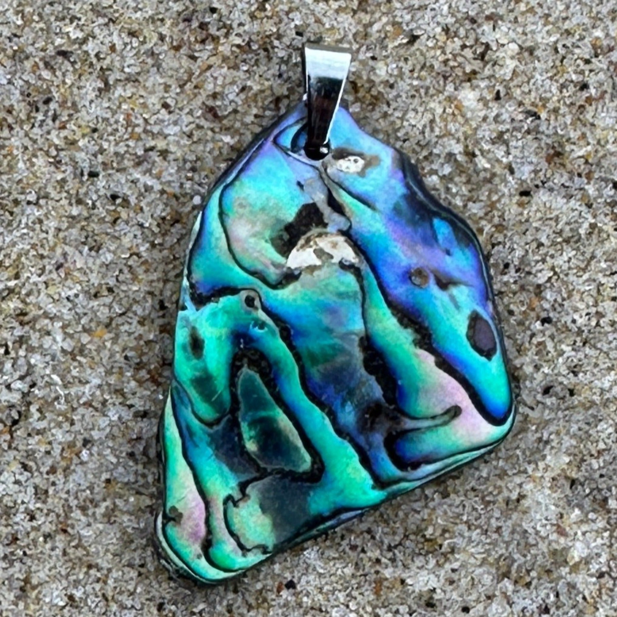 Unique Small New Zealand Paua Shell Pendant with stainless steel bail.