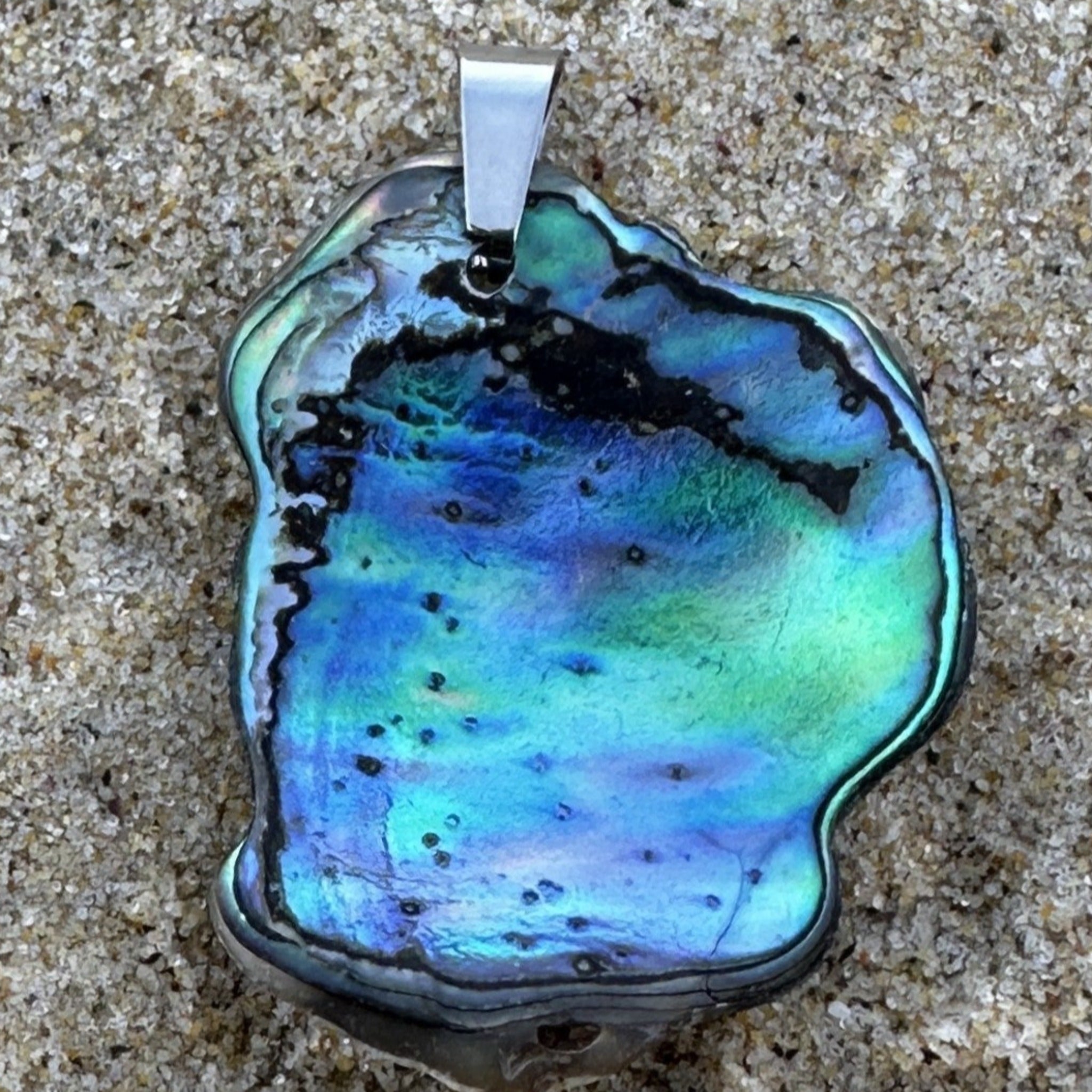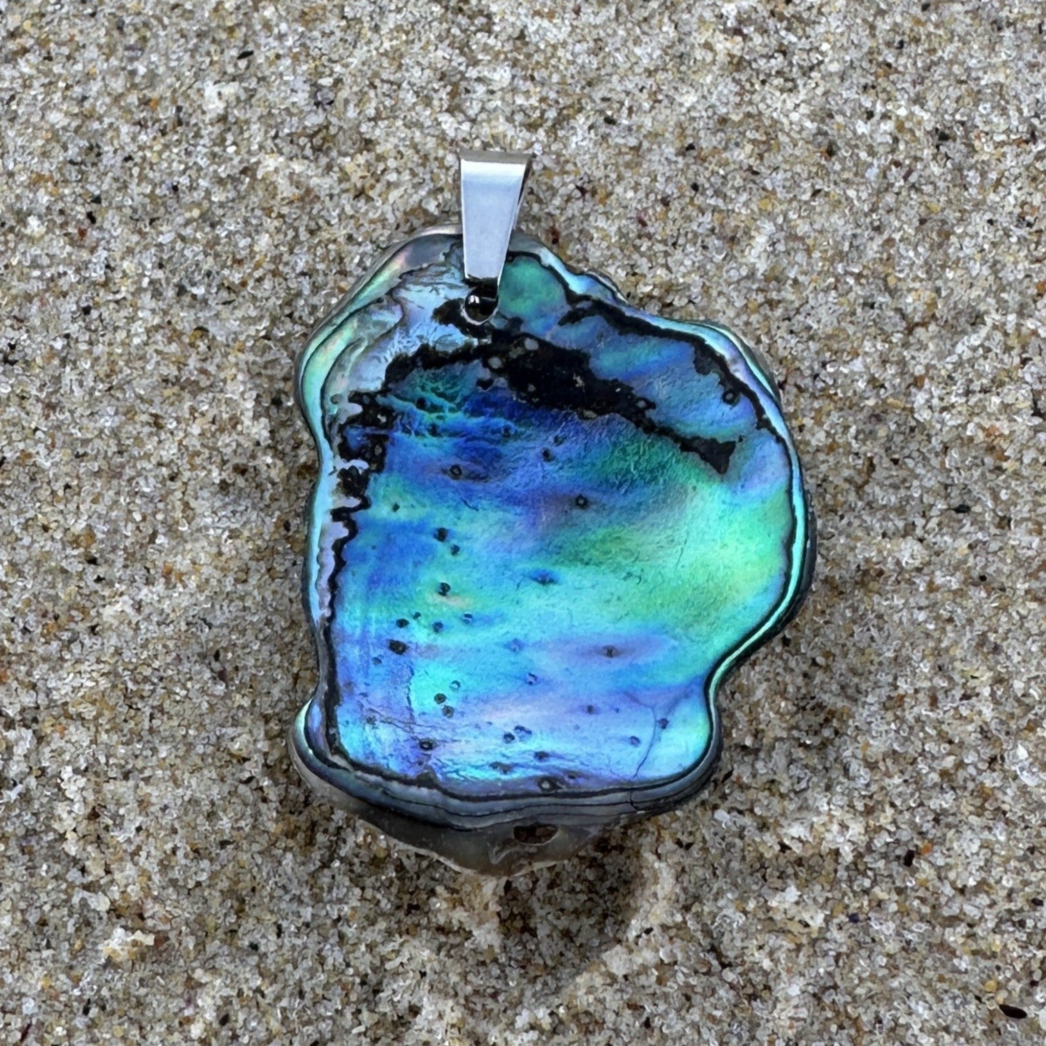 This Paua Shell Pendant comes complete with a complimentary stainless steel chain.