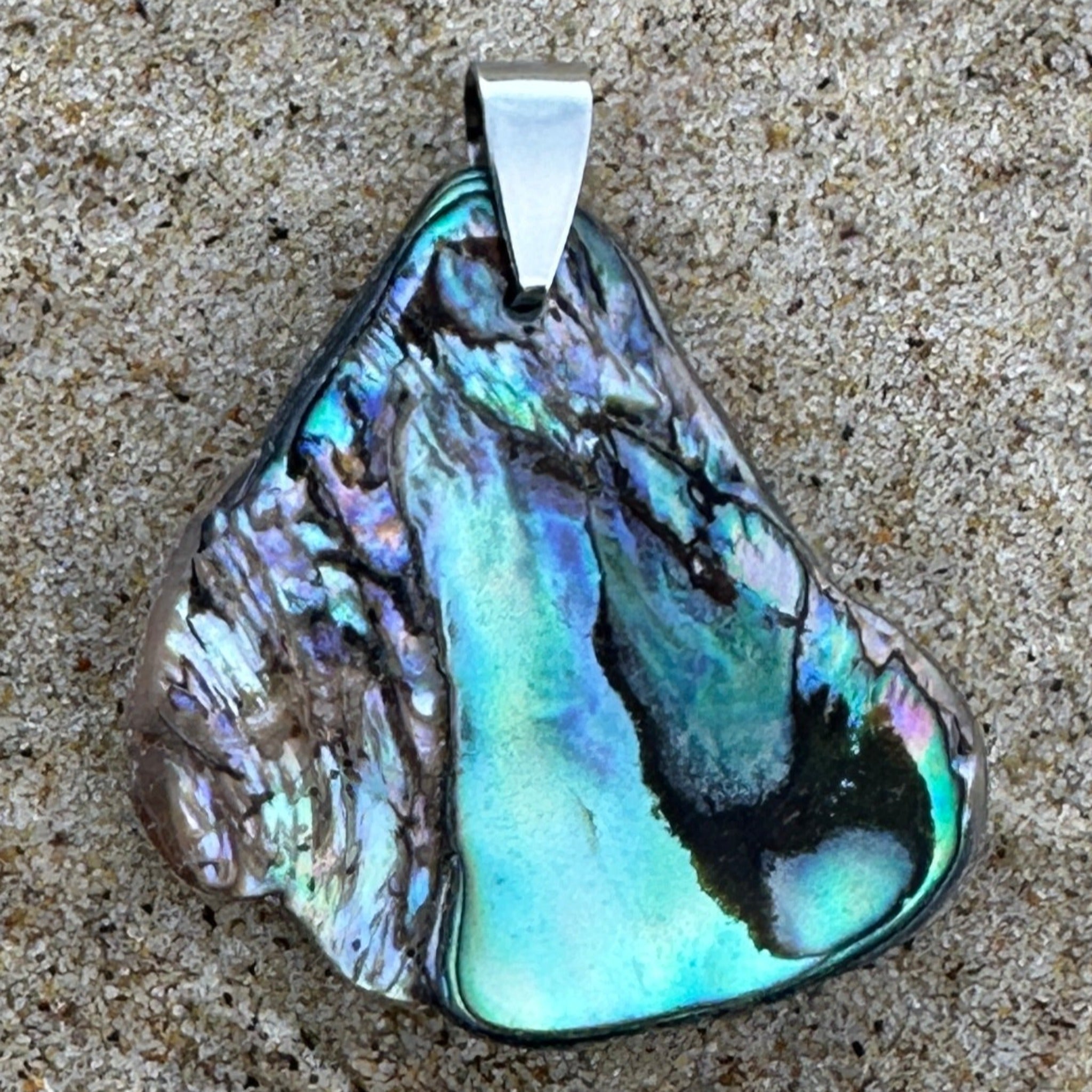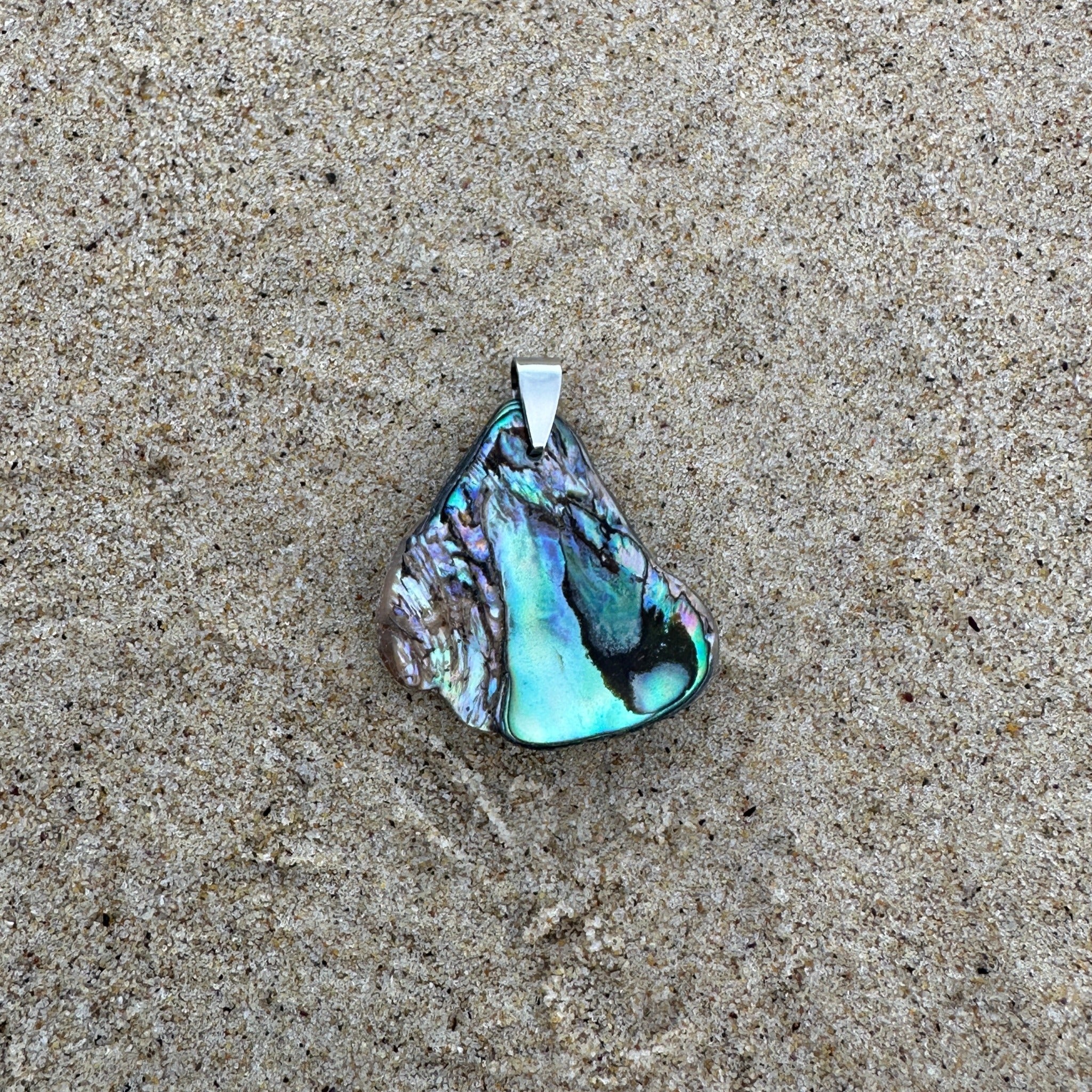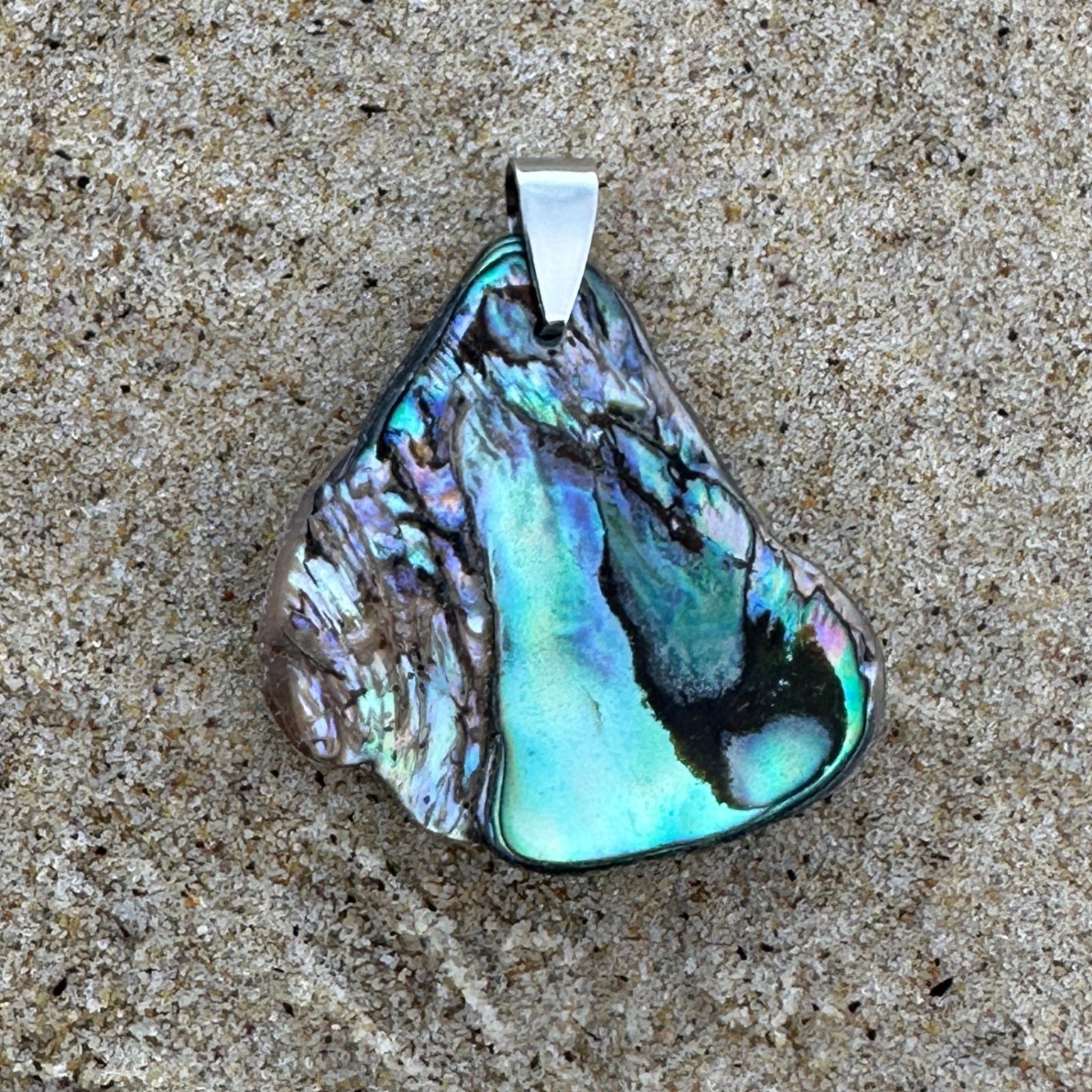 Unique Small New Zealand Paua Shell Pendant with stainless steel bail.